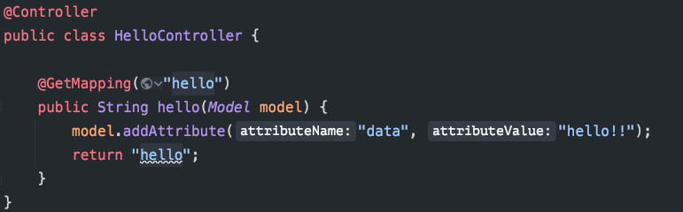 Model을 이용해서 data attribute에 "hello!!"를 지정하고, html에서 data에 "hello!!"가 표시되도록 한다.