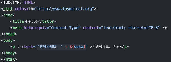 만약, 서버에서 url을 통해서 접근하는 것이 아니라, 전체 path를 입력해 hello.html에 접근하게되면 "안녕하세요. hello!!" 가 아니라 "안녕하세요. 손님" 으로 표시된다.