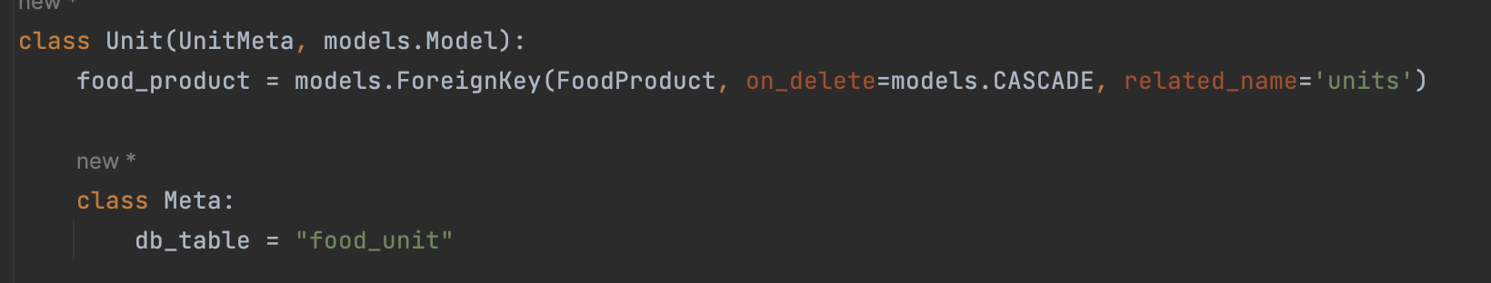 FoodProduct의 table 이름이 models_foodproduct로 되어있다.